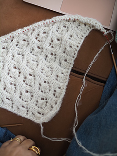 Le point dentelle demande de la concentration mais se tricote facilement (mailles endroit, envers, jeté, diminutions). Le point est donné sous forme écrite et diagramme.