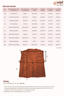 Armhole depth: (20, 21) 22, 23, 24 (25, 26, 27) 28, 29 cm | (7.75, 8.25) 8.75, 9, 9.5 (9.75, 10.25, 10.5) 11, 11.5 inch.