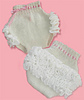 This densely-knit soaker-style diaper cover is made of 100% wool and Ruffles yarn. It is perfect for daytime wear over fabric or disposable diapers. Got a boy? Just omit the ruffles and use the optional leg cuff pattern for a more manly look on these little pants. (LionBrand.com)