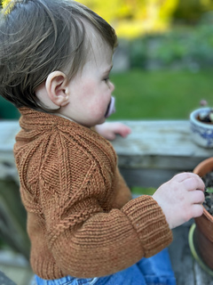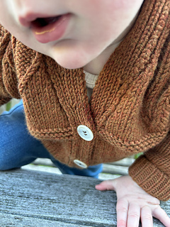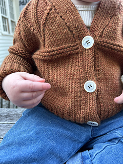 Seamless, top-down cardigan with a unique triangle based yoke construction in baby and child sizes.