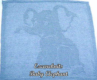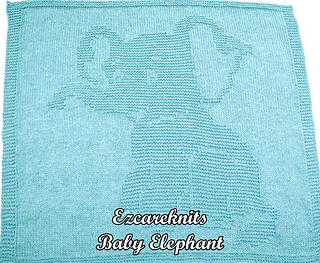 The adorable baby elephant covers a lot of the blanket making it a fun, loving blanket for cribs or throws for babies and toddler alike. It makes a great blanket when babies need that precious tummy time. This blanket has step by step instruction and only has knit and purl stitches making it terrific for all.