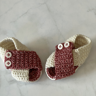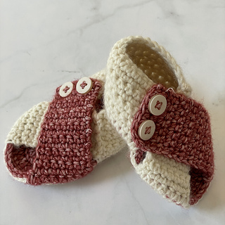 Cozy Classic Booties/Peekaboo Sandals: 20 sts and 8 rows in dc