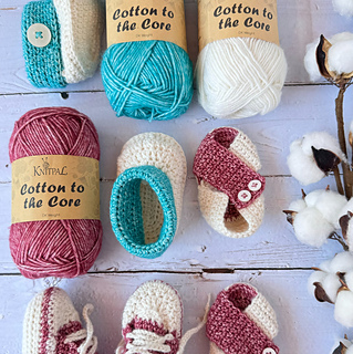 The Baby Shoe Collection brings together three quick and stylish baby bootie patterns in one adorable crochet bundle: All Star Booties, Cozy Classic Booties, and Peekaboo Sandals. This collection is perfect for confident beginners looking to create thoughtful handmade gifts. Crocheted in soft KnitPal Cotton to the Core DK yarn (with Tweed Twinkles as an alternative), these baby shoes are lightweight, comfortable, and perfectly sized for little ones 3–6 months. From sporty lace-up sneakers to buttoned classics and sweet summer sandals, this collection makes it easy to craft a tiny wardrobe of cuteness.
