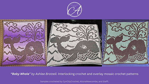 Samples crocheted by Altona Newcombe, CynCityCrochet, Henriette Van Wyck, and Steffi.