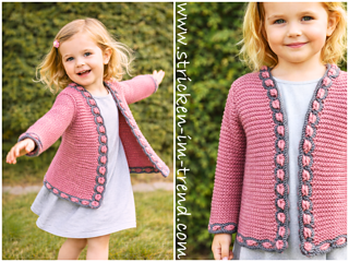 Ein klassischer, liebevoll gestrickter Mädchen-Trachtenjanker mit wunderschöner Borte –