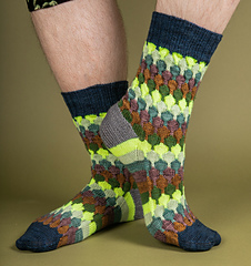 Socks are designed to fit an actual foot circumference of 7 8, 10, 11″ / 18 20, 25, 28cm. The socks are designed to fit with negative ease. Choose a size with a finished foot circumference measurement that is approximately 1″ / 2.5cm smaller than your actual foot circumference, so that the sock will fit nice and snug on your foot. The lengths of the cuff, leg, and foot are easily customizable by knitting more pattern repeats for a longer leg or foot or fewer pattern repeats for a shorter leg or foot.