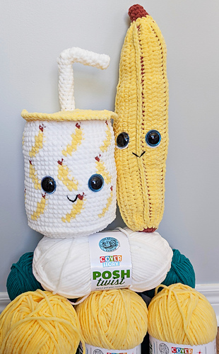 It’s time for a smoothie! Say ‘hi!’ to these oversized cuddly plush buddies, The Banana Smoothie Buddy and The Banana Buddy! These adorable friends are quick projects with fun details that make them fun to crochet!