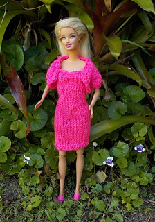 Knit in stocking stitch throughout this is an easy pattern with no additional notions needed. The dresses are worked in one piece to armhole with a back seam. Very easy to children to dress Barbie. I have used eyelash yarn for the white jacket but any fancy yarn would do.