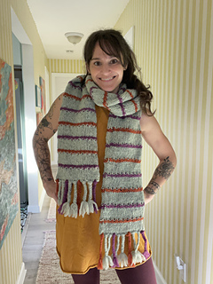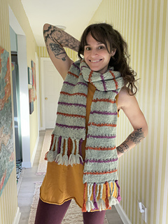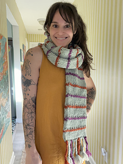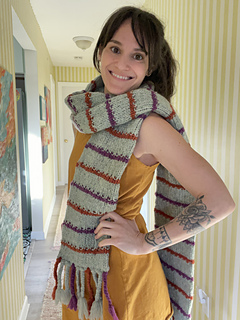 The Barcliff Scarf is knit in one piece in the round. After finishing the body of the scarf, the open edges are closed when joining the accent braids to each end.