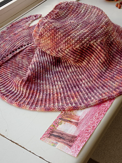 The model shawl was knitted using Haze Lace from Life in the Long Grass in the Cockleshell colorway with yarn held double.