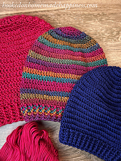 This pattern includes three sizes — child, small adult, and large adult — all using the same instructions with just a change in hook size.