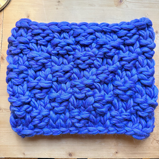 This project uses hands instead of needles. Think of it as a level-up from finger-knitting, or a fun exploration of a non-traditional method and working with jumbo yarns.