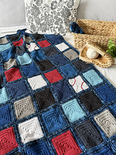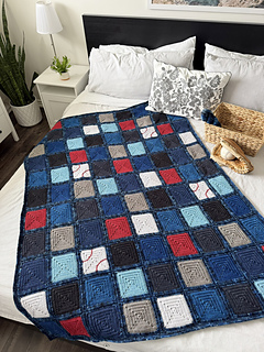 A brand new pattern for all you sports lovers out there!! This blanket was inspired by The Frosted Stitch’s “Lights Up, Let’s Go Collection”. I grew up playing baseball and knew I just had to try my hand at a grown up version of a blanket pattern. I love a good theme…but I didn’t want anything that was too cheesy or obviously baseball. I’ve stitched some red onto a few of the white squares to turn them into subtle baseballs. I hope you love them :)