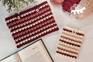 The Be Mine Book Sleeve is a 2 in 1 crochet pattern! It includes instructions for both a e-reader sleeve and book sleeve! You can use these little pouches for anything though! These keep your e-reader and book pages safe and protected, perfected when you take your book on the go with you and toss it in your bag!