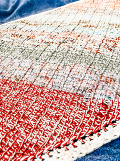 This blanket was named for the beach vibe of the blanket when a mini set is held double with a coordinating solid. For this blanket, I used the Terracotta mini set from Hue Loco and held double with bare yarn. With the added bare yarn, it transformed the palette to beach vibes. And my main thought while crocheting it was “this is for a beach baby” so the Beach Baby Baby Blanket was dubbed the name.