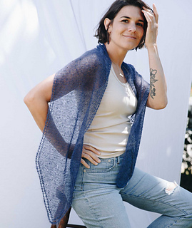 We love this scarf knit in the subtle variegated colors of Alchemy Haiku, but it also looks lovely in solid colors of mohair lace yarn (like Rowan Kidsilk Haze).