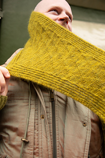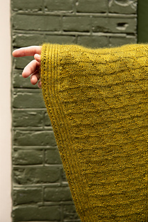 24 sts & 32 rows = 4″ / 10cm in stockinette stitch after blocking (holding both strands of yarn together)