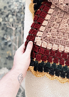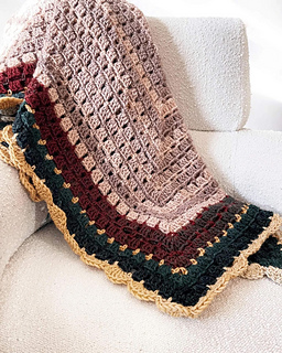 Self-striping yarn does much of the visual work, making each throw unique while keeping the project engaging from start to finish. The result is a graphic, cozy blanket that works equally well as a statement piece or an everyday layer.