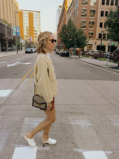 The textured stitch pattern provides a bold consistency. The design features a strong cable that runs from the saddle shoulder down the sleeve.