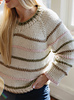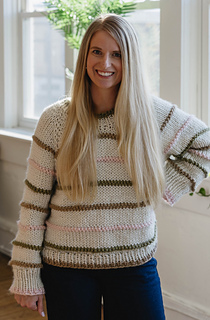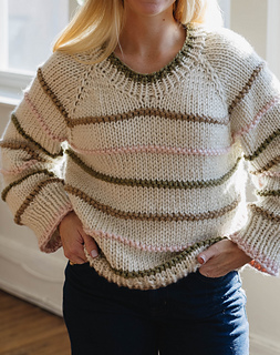 The Beginner Stripes Sweater was designed for those wanting to make a knit sweater for their first-time. It works up quickly and is made top down, making it easy to try on as you work. This pattern was intentionally designed to set beginners up for success with a full video tutorial and several picture aids.