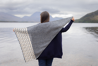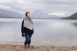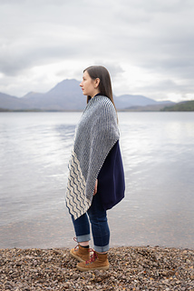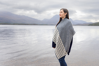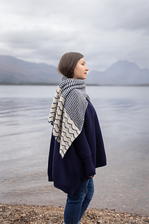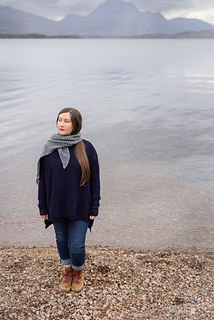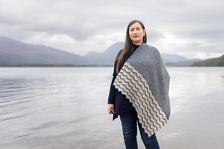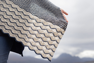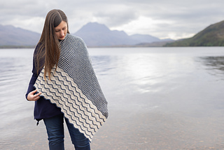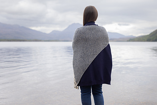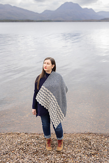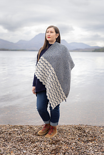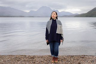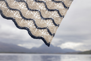 This simple hap, with its decorative scallop-shell border, is inspired by women’s work in the shielings of Wester Ross. It’s named for the beautiful shieling hill which you can see (and walk to) from Poolewe.
