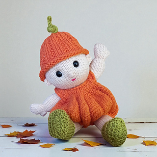 The outfit is knitted flat from the top down, with a single button closure at the back for easy dressing.
