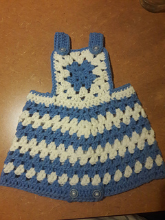 Granny square bib in four colors tops shorts worked in an easy double crochet pattern. The back straps button in front.