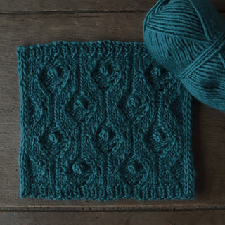 The rhythmic pattern combines needle knitting with bobble stitches made using a crochet hook for a playful accent.