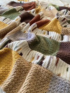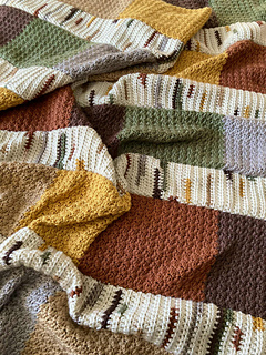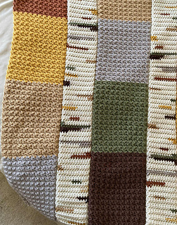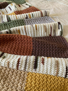 - I am no longer crocheting individual squares of colors for the background and seaming them together. They are now crocheted in color block style panels.
