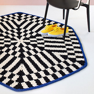 Molla Millsin suunnittelema pehmeä matto geometrisellä kuvioinnilla. Matto kirjovirkataan Lankavan Frotee-pörrökuteesta.