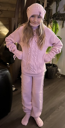 Settet har noen fine detaljer, som lommer både på genseren og på buksen. Dette kan sløyfes om det er ønskelig, noe som er godt forklart i mønsteret om hvordan du går frem.