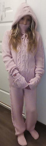 Det er puls-varmere isteden for vanter. Og raggene har selvfølgelig samme mønsteret som resten av settet.