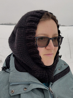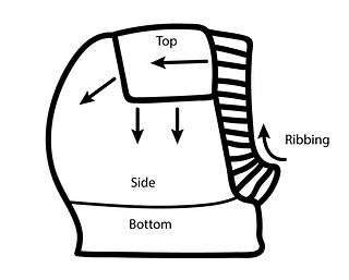 Ribbing is made all around the face opening and two small seams complete the project. The ribbing can be made wider or narrower, depending on how much of the face you want to be exposed.