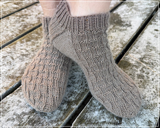 Pinner 2,75 – 3 mm for mellomtykt sokkegarn. 3 – 3,5 mm for tykt sokkegarn. Bruk din erfaring og strikk med pinner som passer deg og ditt garnvalg. Jeg bruker tynnere pinner enn oppgitt på garnet jeg velger, da jeg syns sokker skal bli faste og gode å ha på.