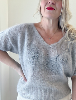 Short sleeve grey sample knit: 5 (5, 6, 6) (7, 7, 8) 9 balls of Isager Silk Mohair (75% kid mohair, 25% silk, 212 m / 230 yds / 25 g) in colorway 2 S.