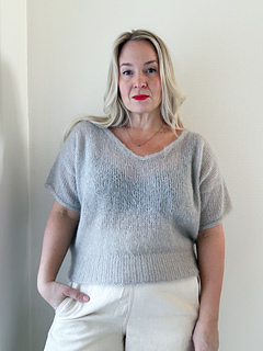 Lyhythihainen harmaa mallineule: 5 (5, 6, 6) (7, 7, 8) 9 kerää Isager Silk Mohair (75 % kid mohair, 25 % silkki, 212 m / 25 g) sävyssä 2 S.