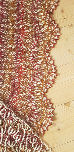 The stitch pattern in the shawl reminds me of a flower, growing from a seed into a full bloom. There are three stages of the pattern , each containing different floral motifs. A lot of brioche stitch motifs look like plants and flowers, but the increases and decreases that are needed to make these motifs are not always standard. In every stage, there is an introductory video explaining what types of new stitches and techniques are used and there are individual videos of each stitch instruction. In total, there are over 2 hours of video content to help you learn every increase, decrease, and specific technique in the pattern. The instructions aren’t explained row by row in video, but you can always get help in the forums if you get stuck with the instructions.