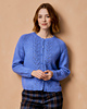 THIS RAGLAN cardigan from Caroline Birkett features a twisted bell rib lace pattern around the hems and cuffs, and bands of chevron lace either side of the button bands. The body is knitted first to the armholes, followed by the sleeves, then the pieces are joined to work the upper body. The garment is finished with ribbed button and neck bands. It’s knitted in The Fibre Co.’s &Make DK, a blend of Highland wool, alpaca and linen which offers a beautiful handle and crisply defined stitches.