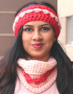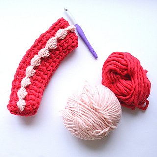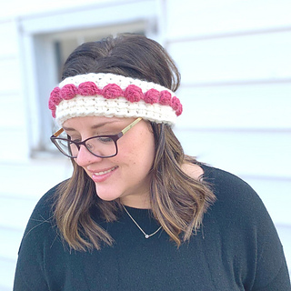 The ear warmer can be adjusted by doing more or fewer rows of TSS before adding the surface bobbles.