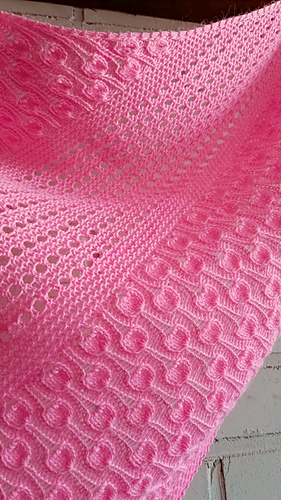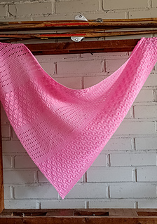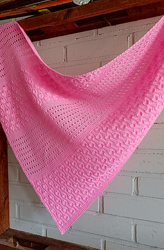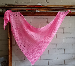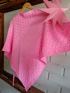 In the shawl, ice cream cone shaped stitch pattern and garter stitch with yarnovers alternate with each other.