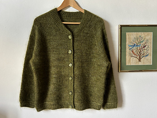 The cardigan shown is a size 3 worn with 9 3/4 in (24 cm) of positive ease (I wanted mine with a lot of positive ease), but recommended ease is 5-10 inches (12-25 cm).