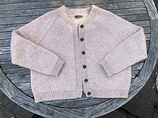 The cardigan is knitted seamlessly, from the top down. The collar is shaped with short rows and the sweater has some lovely details at bottom hem and cuffs.