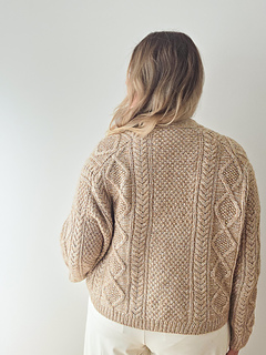 The Book club cardigan has a relaxed fit with dropped shoulders. It is knitted seamlessly top down with a diamond cable pattern that is a lot easier than it first appears and is suitable for knitters who are just learning to knit cables.