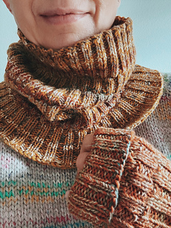 I find this neck warmer very useful during long dog walks on cold and windy winter days. This pattern is beginner-friendly, but also may be a perfect project on-the-go for a knitter of any level.