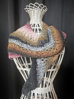 This is a basic crescent shaped scarf/shawl pattern with two versions: a deeper version for bandanas and shawls and a shallower version for scarves. Add your favorite touches like changing yarns midway or playing with stitch textures. Pattern is a building block you can customize.