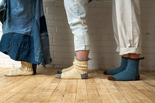 Boot is a heavy weight sock, which can be used as a cozy house sock, or inside your wellies. The textured stitch pattern is especially comfy, and feature a unique “no short-row” heel construction.