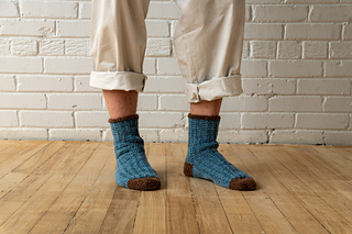 Socks are worked from the top down, from a provisional cast-on. The heel is shaped using a “no short-row” method, and the length of the foot can be adjusted to your size. The top of the sock is finished with an I-cord bind-off.
