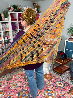 Shawl is 68.5” 174 cm wide by 37” 94 cm deep, without edging.