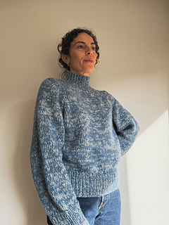 Boreal is a top-down raglan sweater. It is seamless. It’s a modern and timeless design with nordic aesthetic. Knit with two strands held together, it knits up quickly. It’s designed for everyday wear. You’ll start with the collar, then work raglan increases for the yoke, along with a few short rows to shape the neckline. The body and sleeves are then separated and worked in stockinette stitch in the round until the desired length.