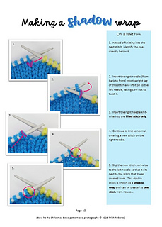 All pieces are knitted flat on straight needles. They’re then seamed and attached using mattress stitch. This pattern involves shadow wraps - a step-by-step photo tutorial is included in the pattern but you can also see a video here.